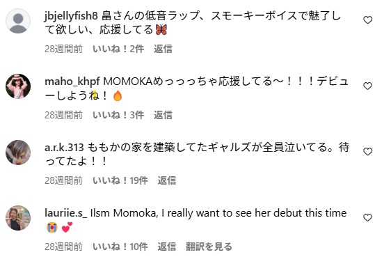 モモカさんはノノガに出る前に日プ女子に出ており、当時から人気がありファンがいたため、ノノガに出演することが決まってすぐ多くの反応がありました!