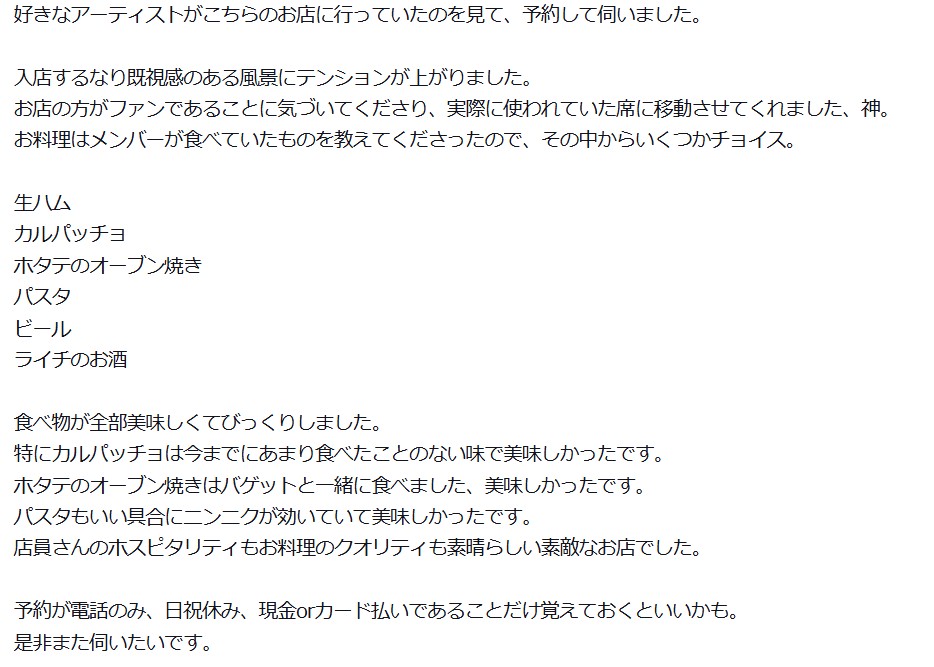 さらに、メンバーが食べた料理も丁寧に紹介してくれるなど、「ファンに寄り添った神対応だった」という口コミが印象的でした。