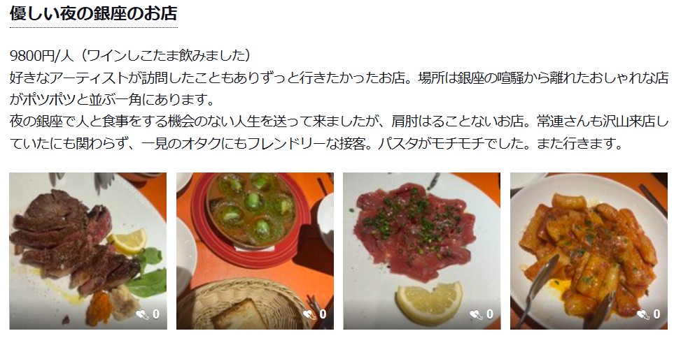 別のファンの口コミでは、「銀座で食事する機会はほとんどなかったけれど、ここなら緊張せずに楽しめた」という声も。
